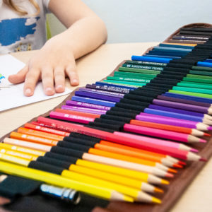 Praktikus szett pazar vászon tokban – a színesceruzák átláthatóan vannak elrendezve és nagyon jól védve. Bármikor könnyen használható.