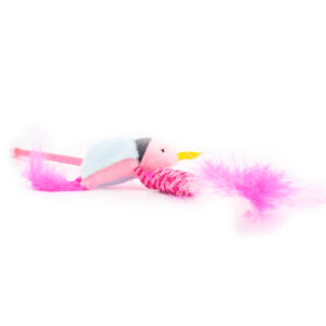 Játék macskáknak, játékpálca tollal és madárral, rózsaszín