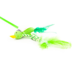 Játék macskáknak, játékpálca tollal és madárral, zöld