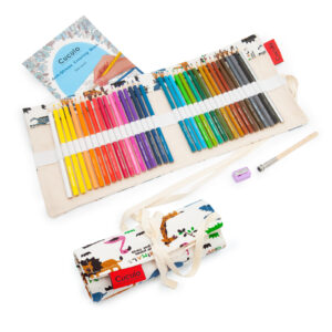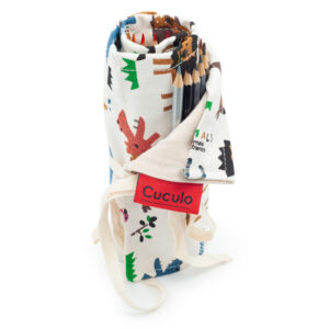 Zsírkréták összetekerhető vászontokban hegyezővel és hosszabbító bővítménnyel, 36 darab, ÁLLATOS motívumok, Cuculo, stresszmentesítő kifestők INGYEN