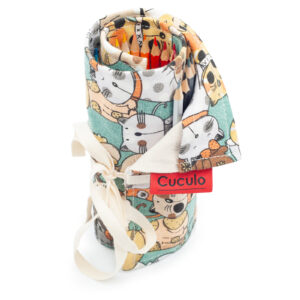 Zsírkréták összetekerhető vászontokban hegyezővel és hosszabbító bővítménnyel, 36 darab, MACSKÁS motívumok, Cuculo, stresszmentesítő kifestők INGYEN